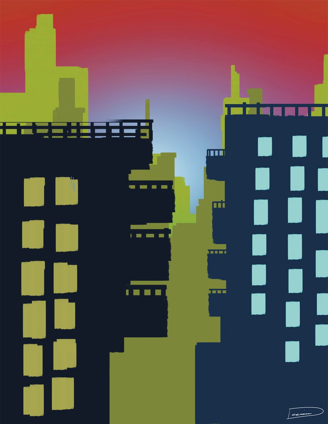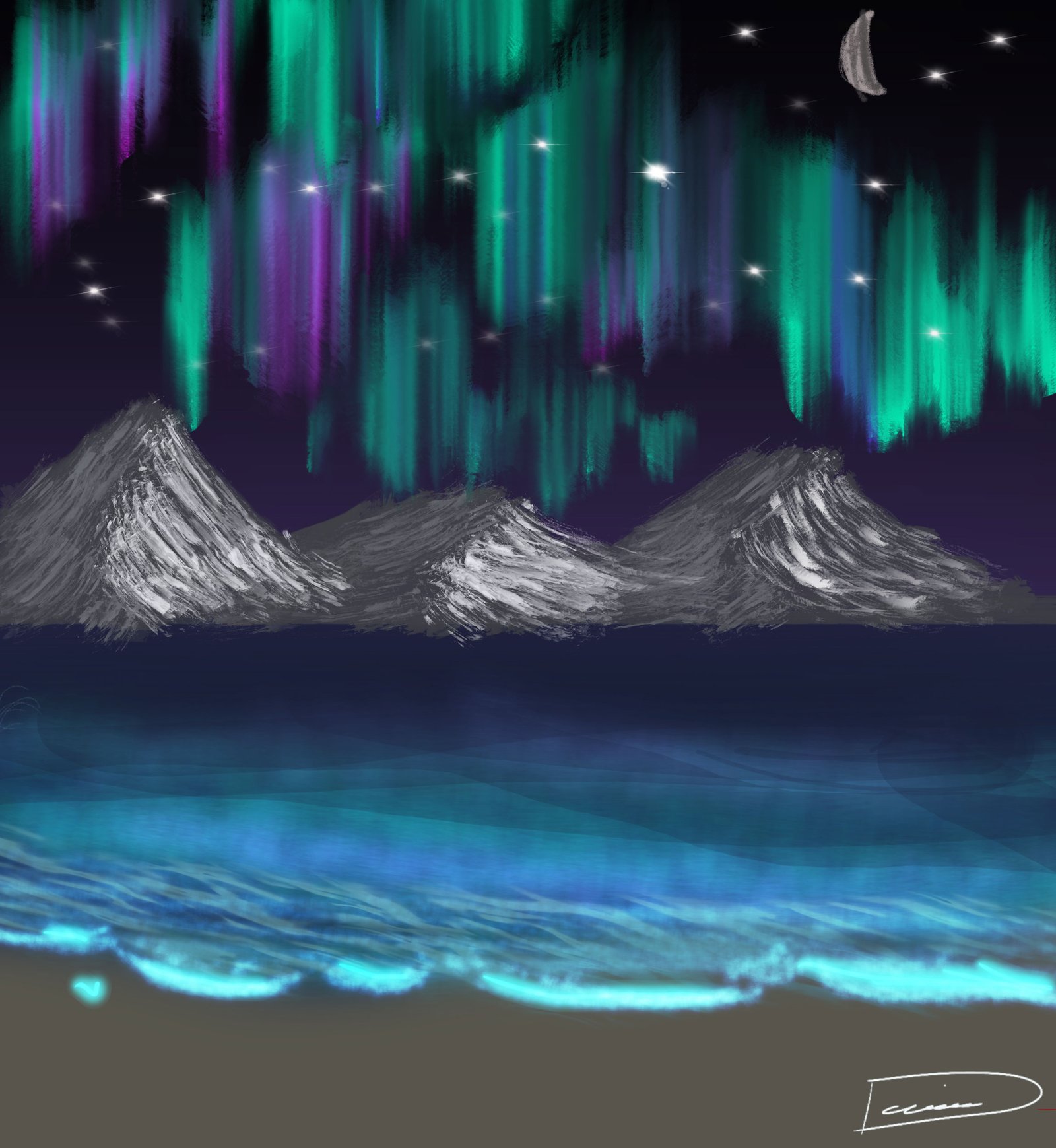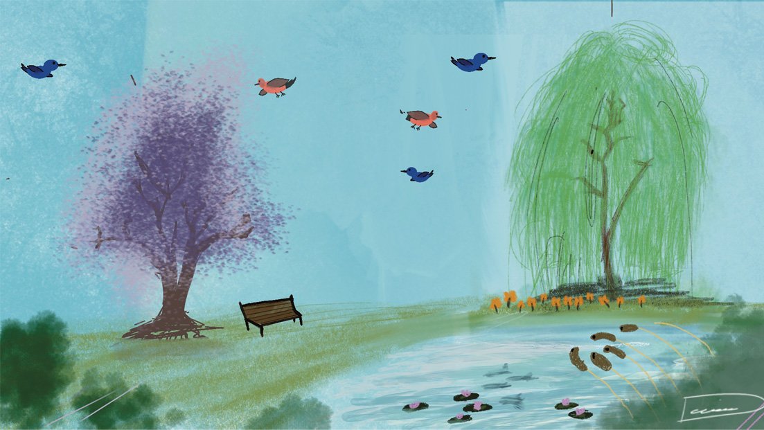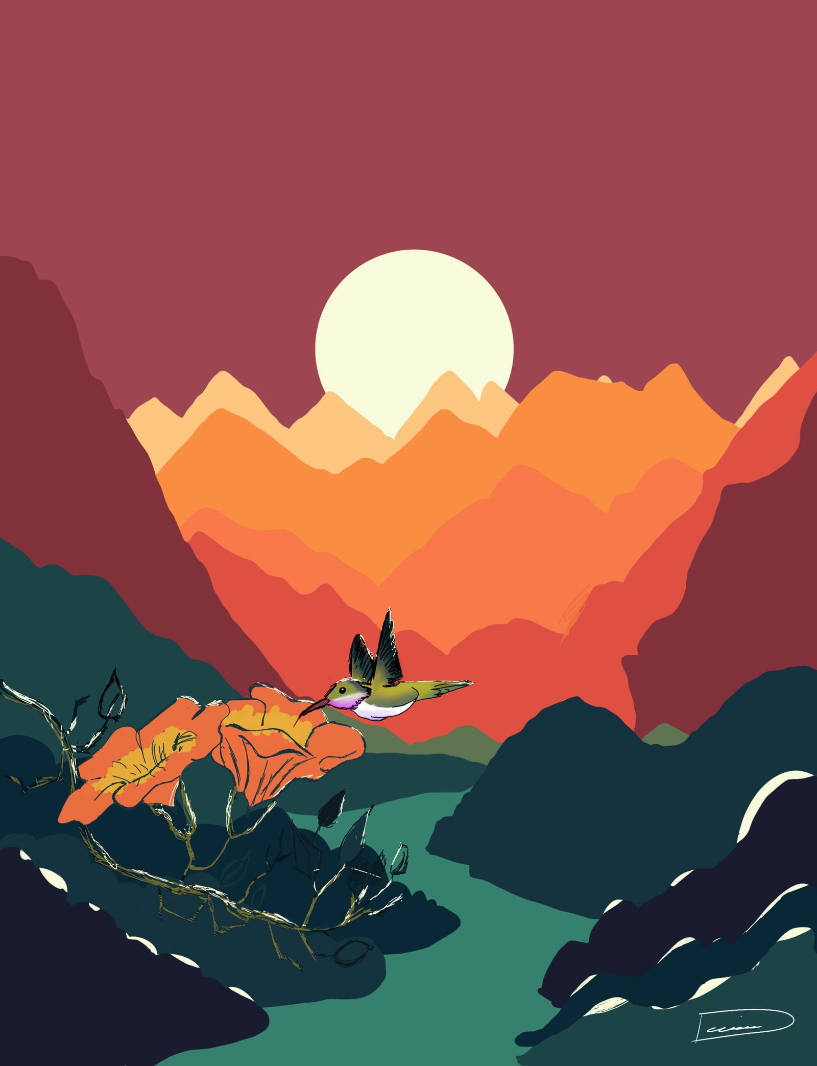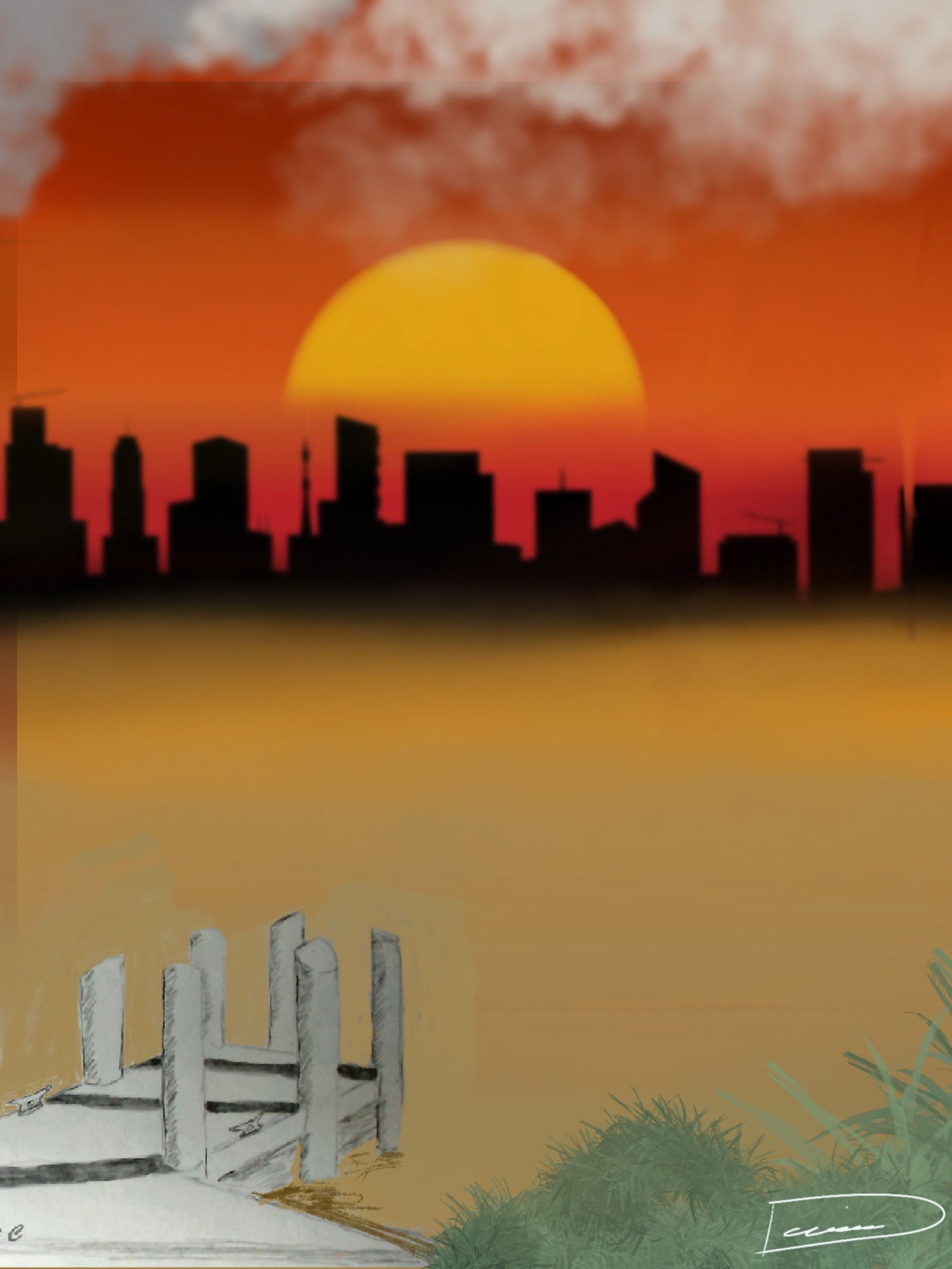 I worked on the digital art pieces that ultimately were combined to create this work. We envisioned a story that started with the Ujima Village, their past and ultimately the tainting of the land. Once the oil was cleaned, we documented the beauty of nature and a brighter future full of life and a stronger community.